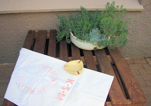 The old tin type colander and dairy container lids used on dairy farms many years ago  from many a granny’s and aunt’s house have no money value but makes nice containers for succulents on the stairs from the stoep (veranda) to the swimming pool.